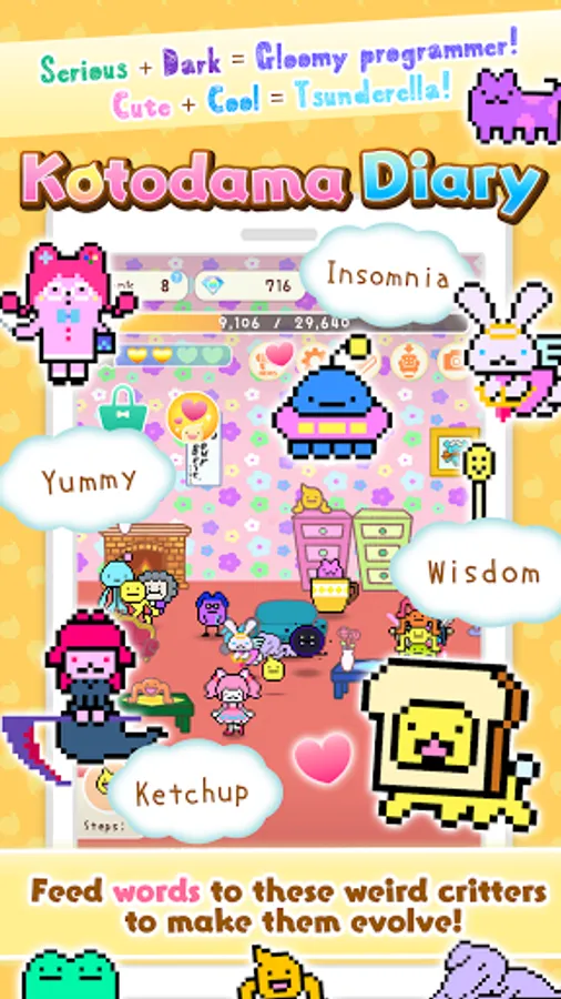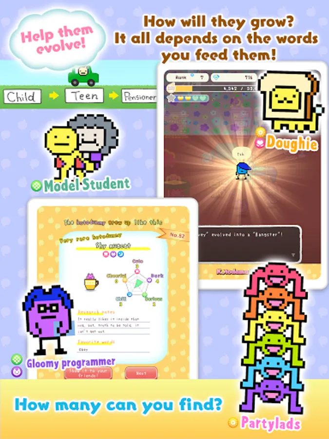 Kotadama Diary's characters evolve depending on the words you feed them, and could even grow up into something... unexpected.