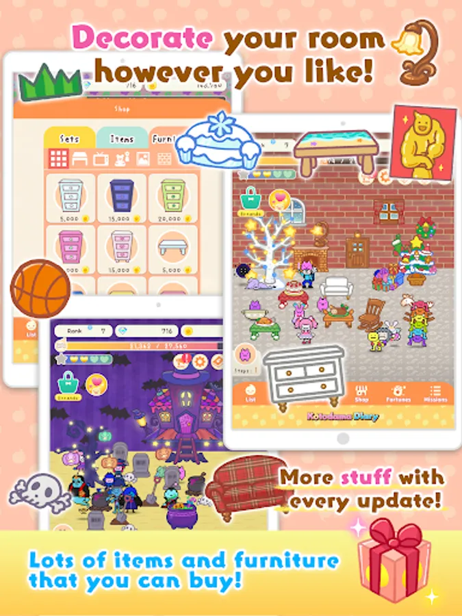 Decorate your room, play with your favorite kotodummies, and create your very own Kotodama Diary!
