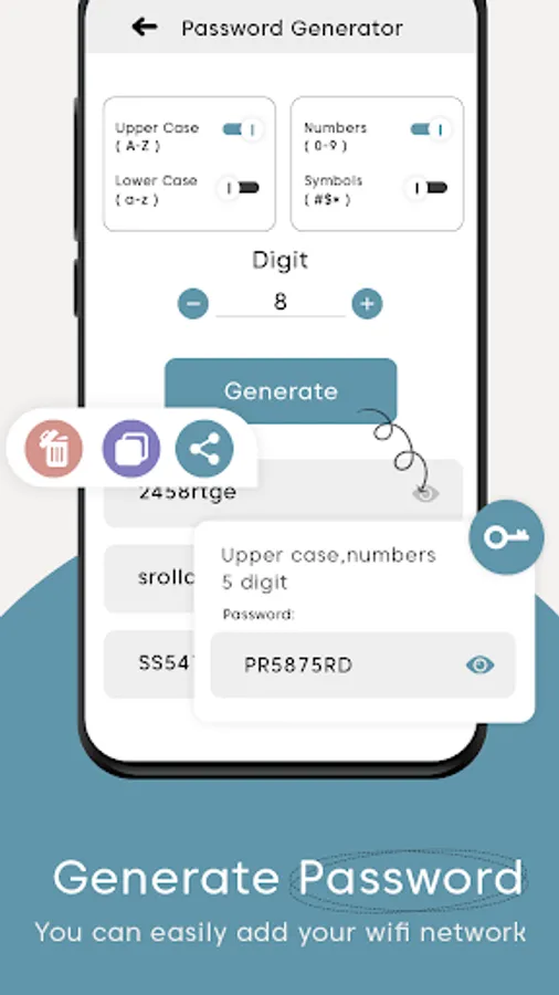 A password generator tool is a simple way to generate secure, random passwords for your connections. Password generator tools typically allow users to use certain parameters for the password, such as the use number of characters, uppercase letters, lowercase letters, numbers, and symbols to generate strong passwords easily. This password manager tool with you can easily generate a strong password and also copy it to share it with anyone.