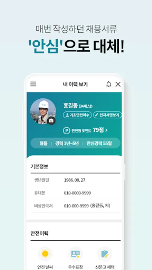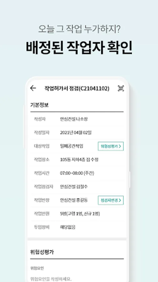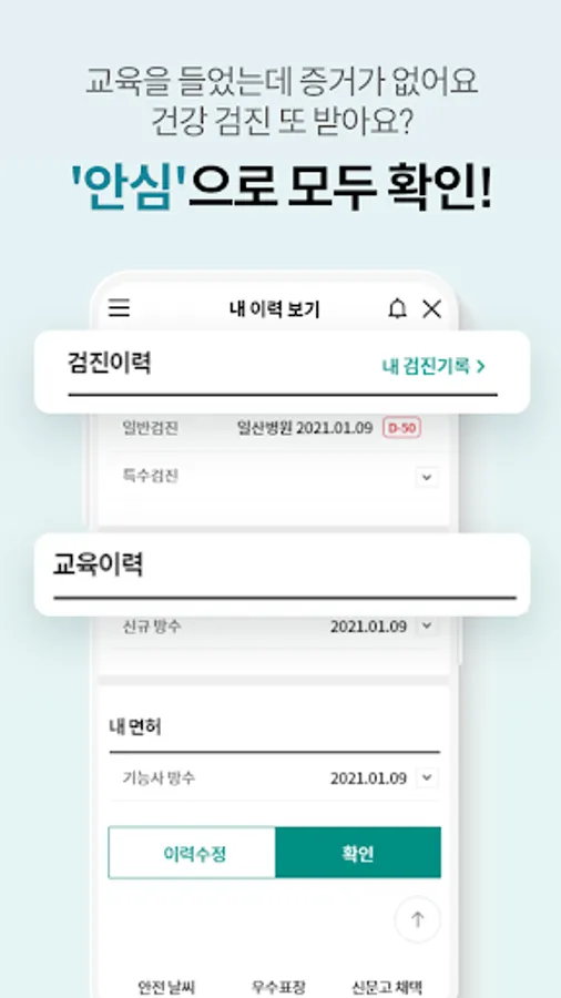 Workers are managed to minimize duplicate training and health checkups through profile management, and managers are provided with services that allow them to quickly and accurately identify risk factors at the site today and automatically record safety data for the entire site. Reassurance pursues the standard model of digital-based safety management.