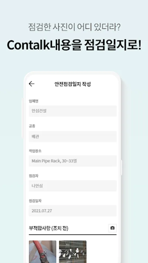 - Automatic creation and provision of safety inspection log based on same-day inspection history