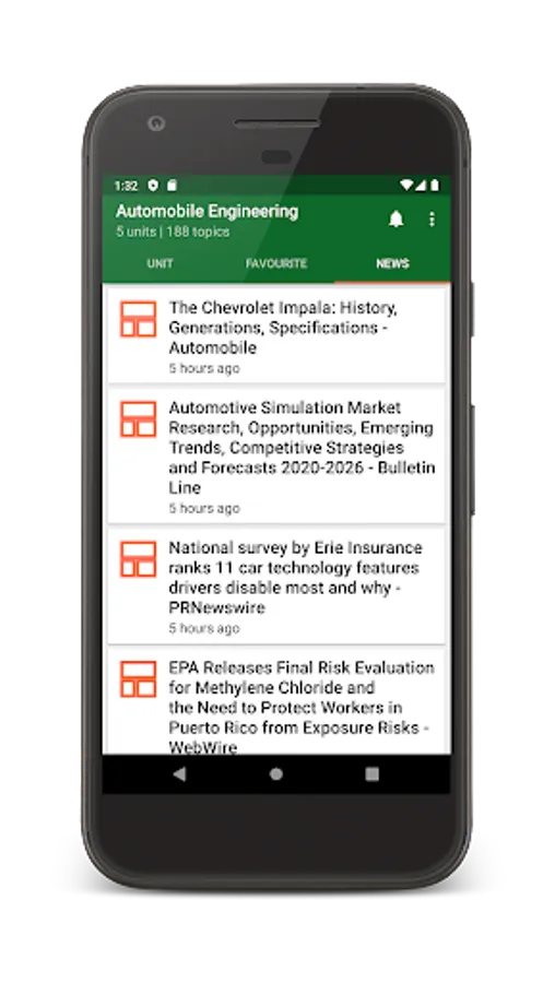 Automobile Engineering eBook with great content for engineering ,graduate and postgraduate students.App covers more than 100 topics from the subjects organized in units and topics. It covers most of the topic required for the engineering graduates and post graduates students. App also shows recent news for the Automobile engineering .