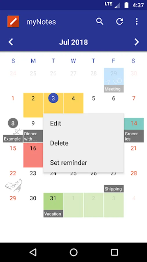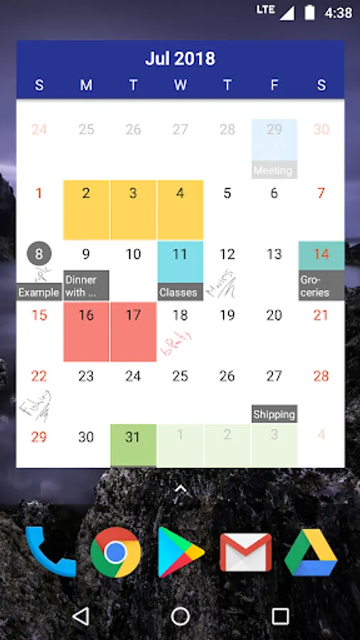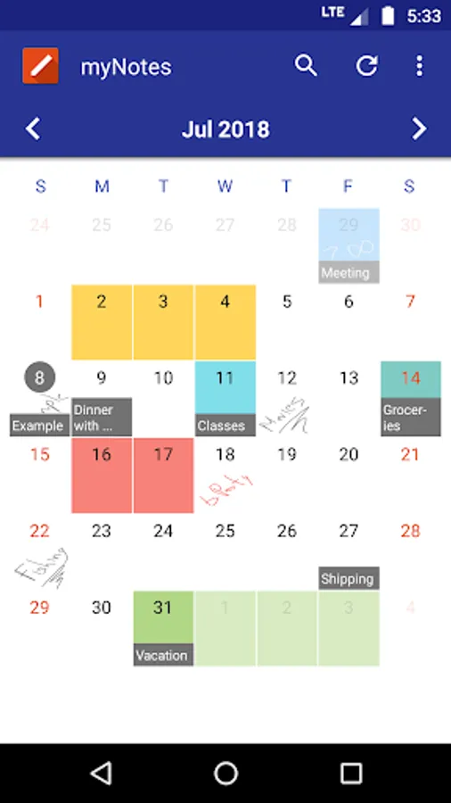 Simply tap on any date and add your handwritten notes in a matter on seconds. After your notes are added you will easily find them on the calendar. You can also check your current notes at glance with the convenient widget.
