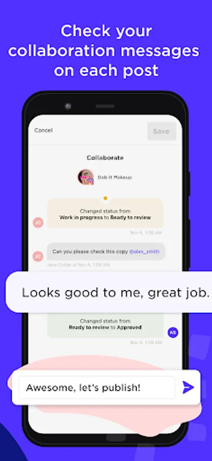 - Collaborate with your team, review or approve content, anytime, anywhere