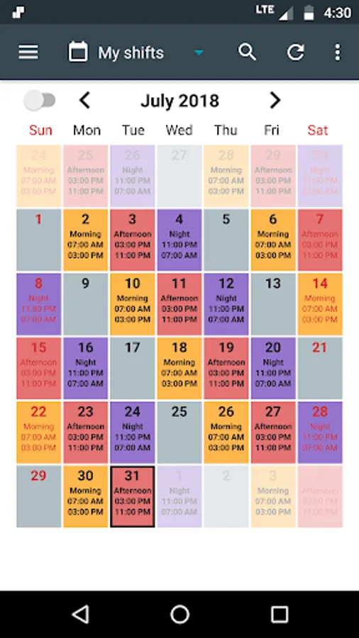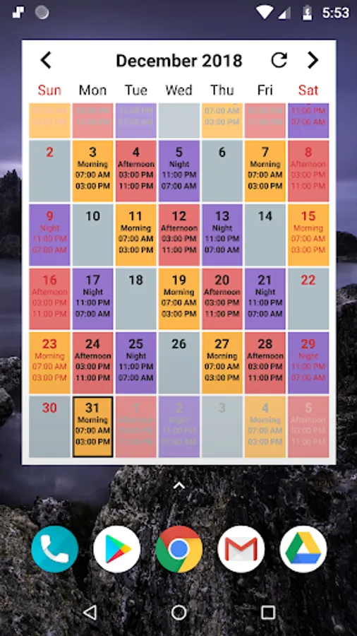 Shift Calendar is a personal duty roster / shift planner / work calendar designed to help shift-workers stay on track of their busy work schedule. Loaded with useful features like alarms, statistics, widgets and even sync with your online Google Calendar.