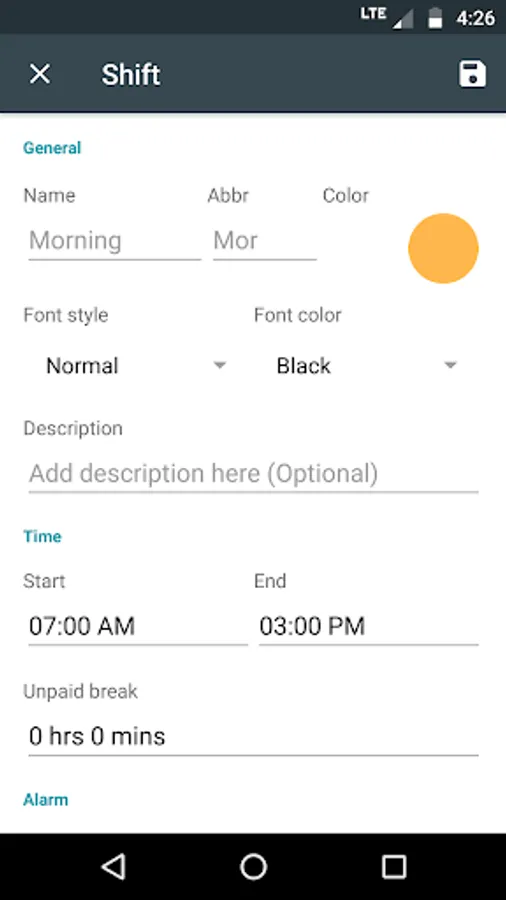 * Set individual alarms for every shift