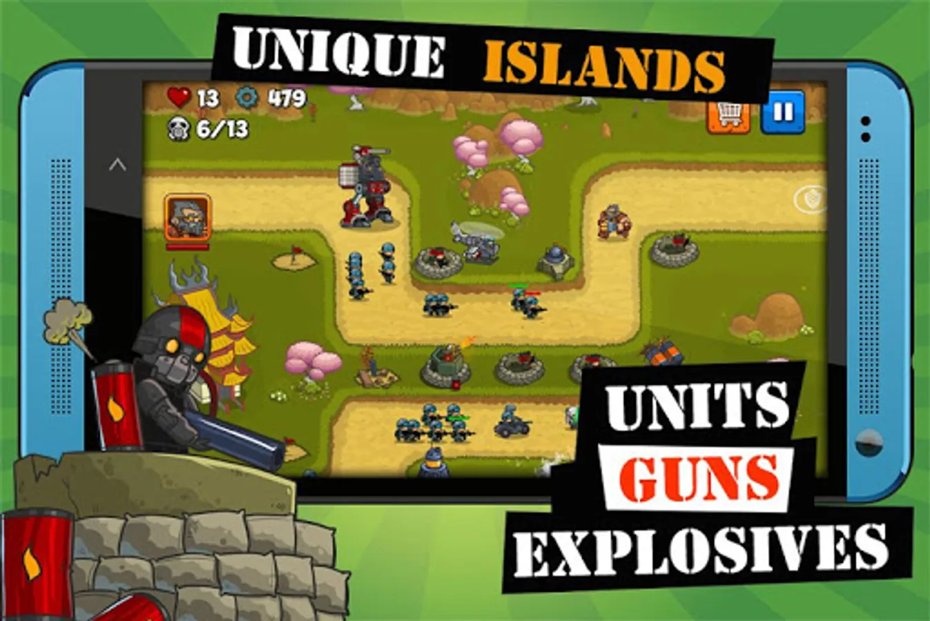 * 3 islands with unique levels allows you to feel a total defense