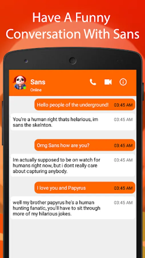 Chat with Funny Skeleton Sans - fun game App to simulate chat conversations. Have fun with your friends, making them believe that you are really talking to Funny Skeleton Sans wallpaers.