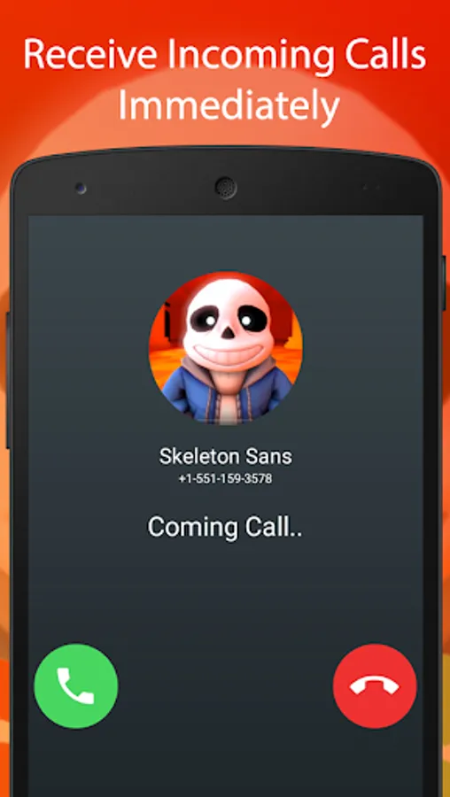 This application is a fake call video of Funny Skeleton Sans, you will receive a fake call video that looks like a real call.