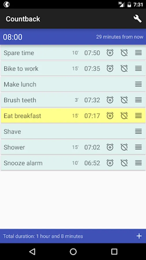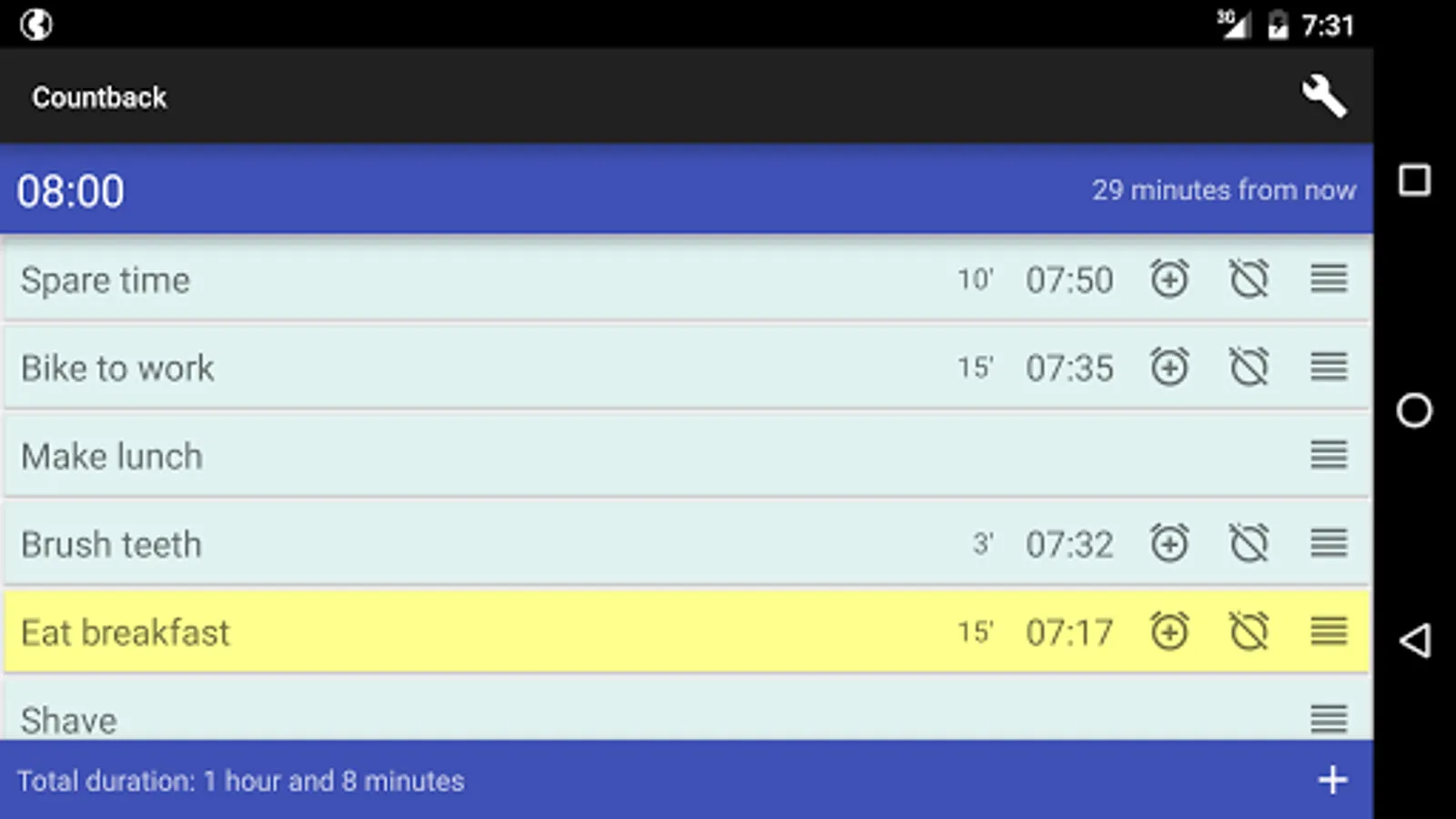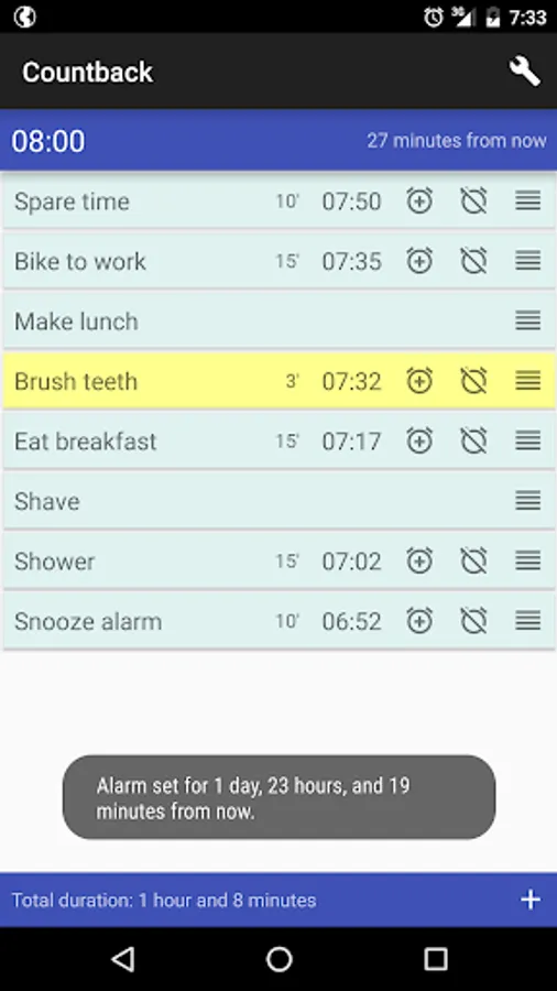 Countback divides your morning ritual into a series of checkpoints, telling you what you should be doing, and when!