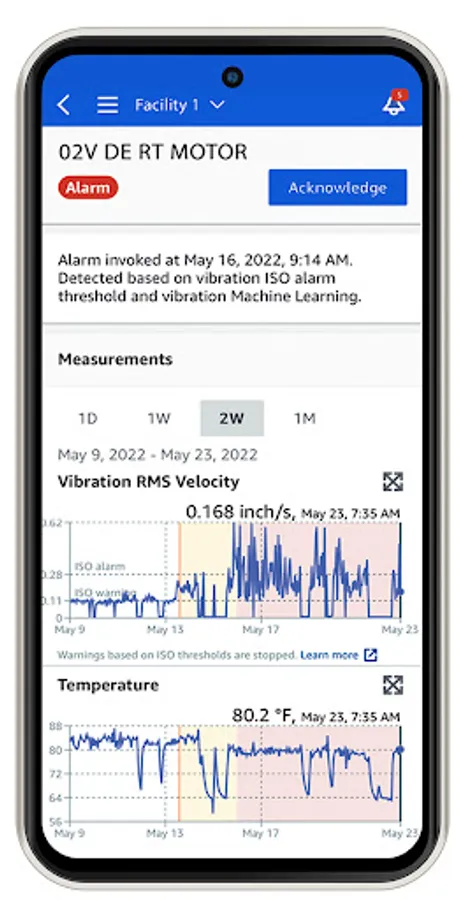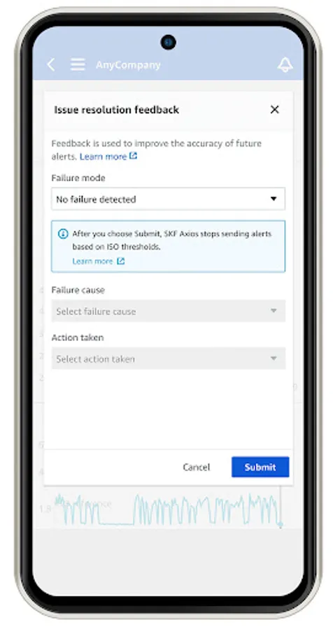 SKF Axios is a simple, wireless and scalable end-to-end predictive maintenance solution. It’s a cost-effective, cloud-based condition monitoring solution from SKF and Amazon Web Services (AWS). SKF Axios collects and analyzes vibration and temperature data to detect equipment anomalies and provide notifications on the health of your machinery. When abnormal machine conditions are detected, users are alerted so they can respond with proper maintenance. The service is accessible via a mobile or web-based app.