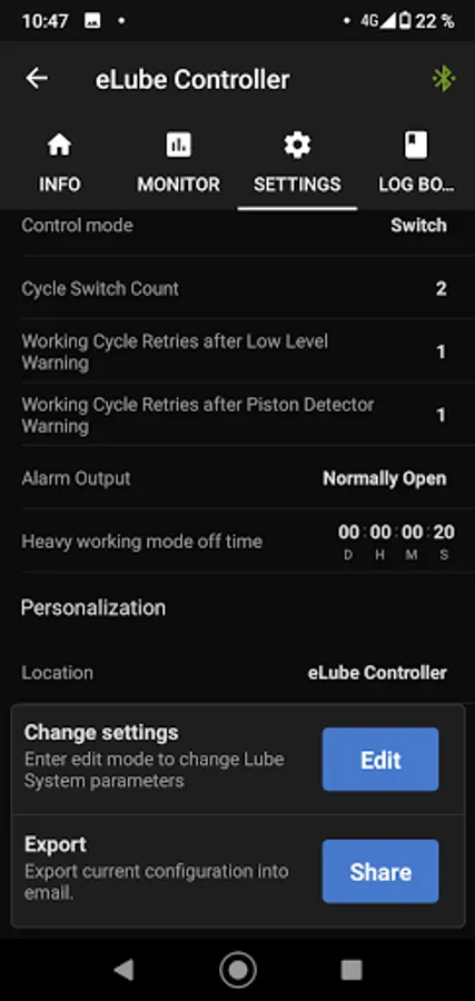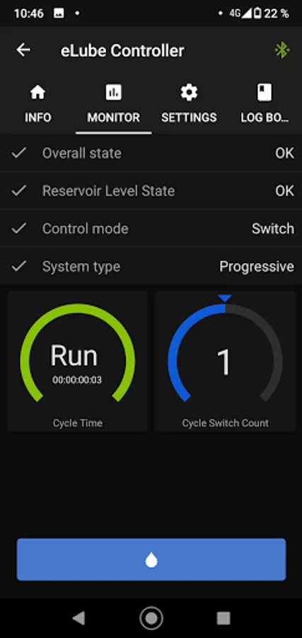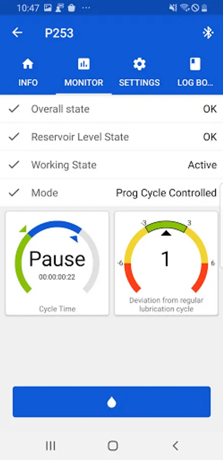 The app connects automatically to all eLube products in range such as pumps or controllers, monitors the lubrication status and indicates the system health at a glance. You can easily monitor the filling level of the pump, the general working state and the working mode of eLube devices. To troubleshoot the equipment you can start a manual lubrication cycle directly from the app.