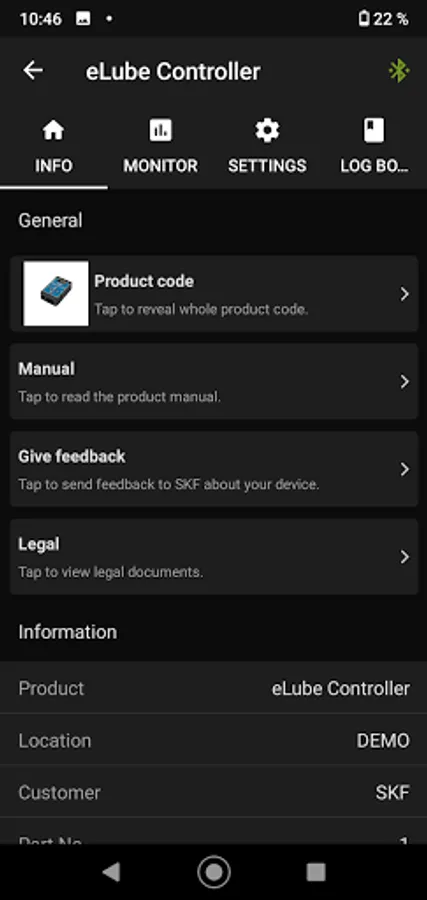 The SKF eLube app allows you to monitor, control and configure your lubrication equipment remotely within Bluetooth range. eLube can help you identify issues at a glance, track machine health data, get early warning of potential failures and take preventive action.