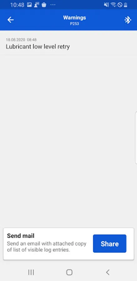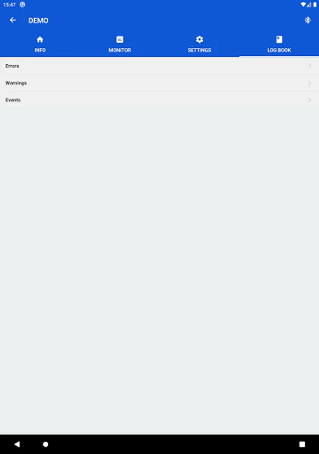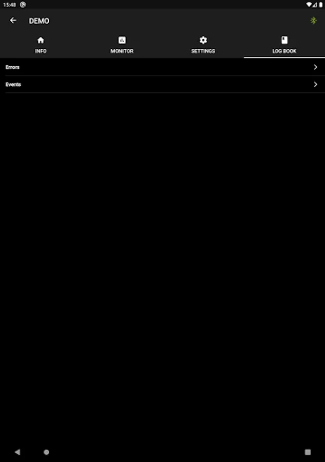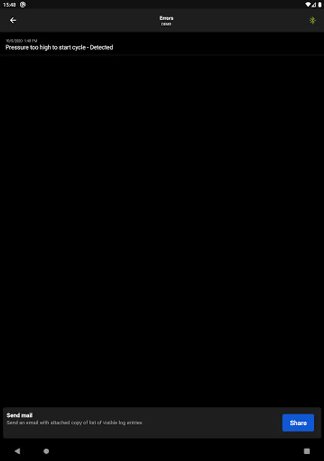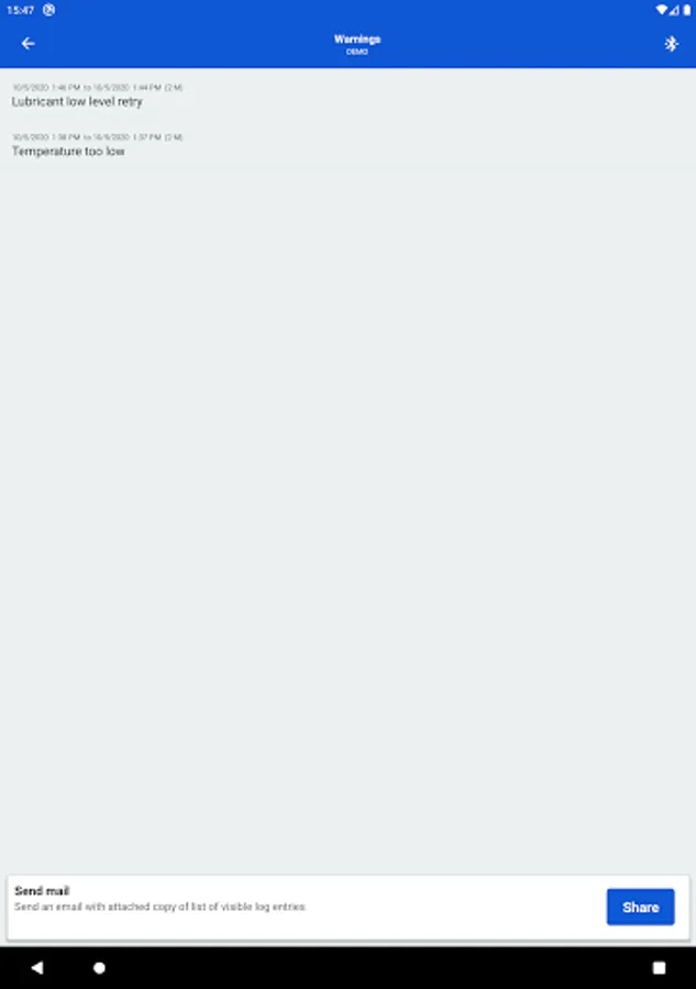 You can access all errors, warnings and events in the log book. Reports are saved automatically, and you can them sent by email. The log book functionality allows you to check if your equipment was maintained properly.