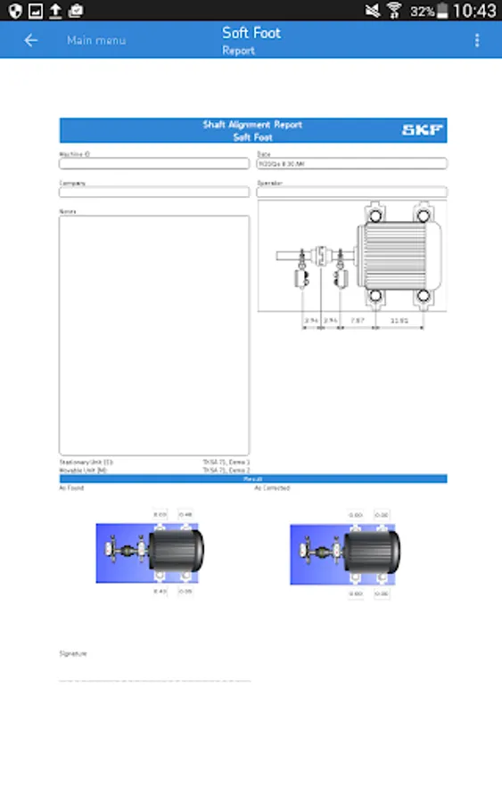 • Automatic measurement report – Automatically generated measurement reports give a complete overview of the soft foot process and results. The reports can be customised with additional notes, a machine picture, a signature and can easily be shared via email or cloud services.