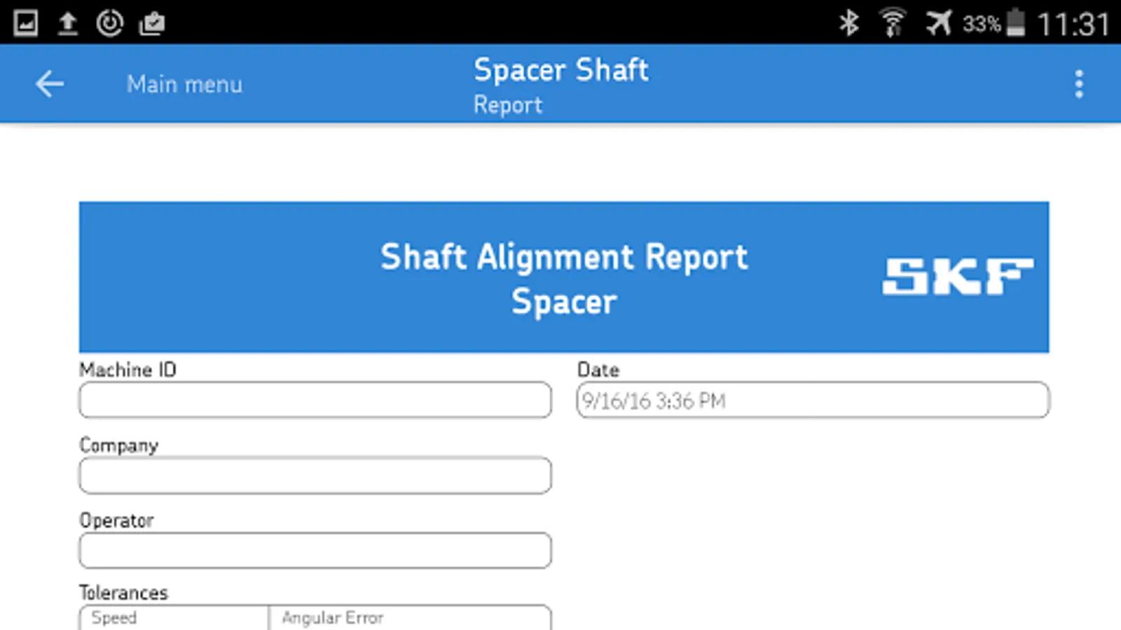 The Spacer shaft alignment app is designed to be used with the SKF Shaft Alignment Tool TKSA 71. Together, the TKSA 71 and the app form an alignment system that allows spacer shaft alignments of many rotating machines to be made in an intuitive and easy way.