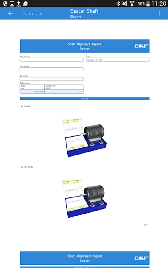 • Automatic alignment report – Automatically generated alignment reports give a complete overview of the alignment process and results. The reports can be customized with additional notes, a machine picture and a signature. The report can easily be shared via email or cloud services.