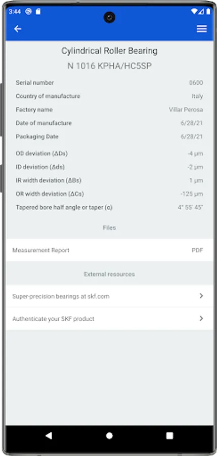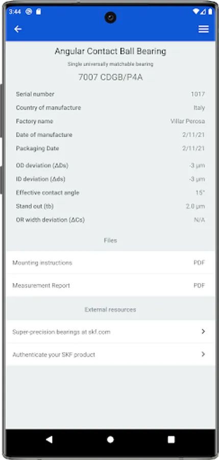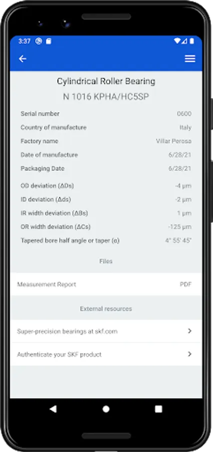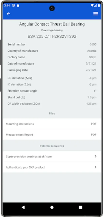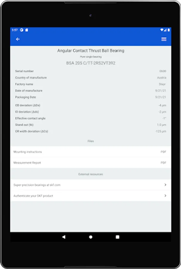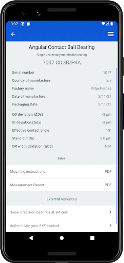 The SKF Super-precision bearing Data Manager allows you to scan data matrix codes on product packaging. This gives you immediate access to manufacturing and product specification data, including installation and mounting instructions.