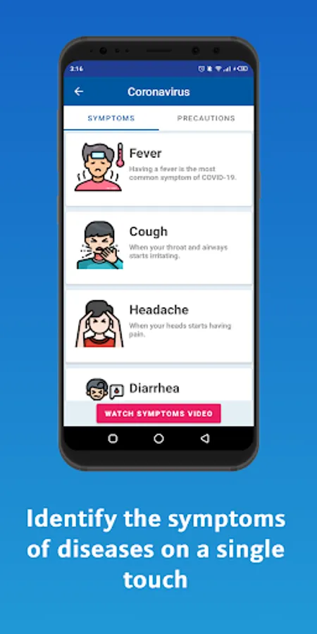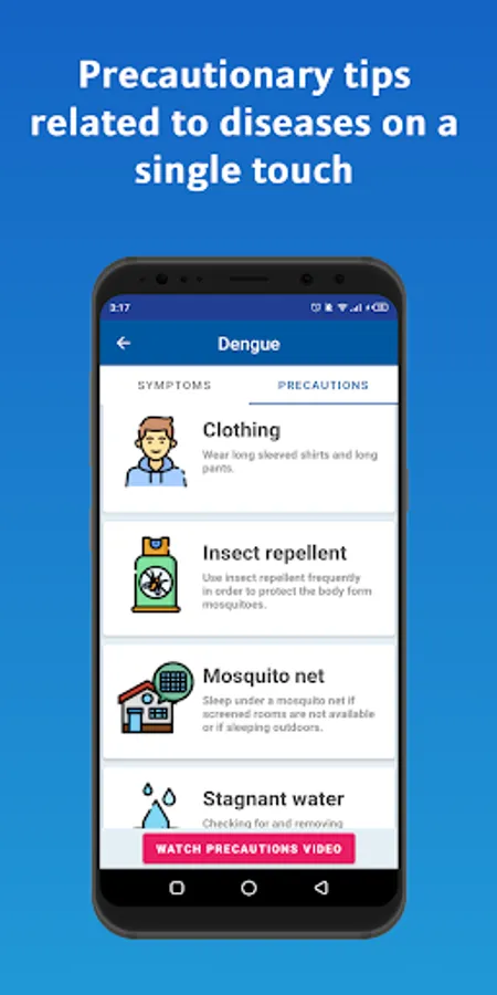 • get symptoms and precautions about dengue, malaria, covid, etc.
