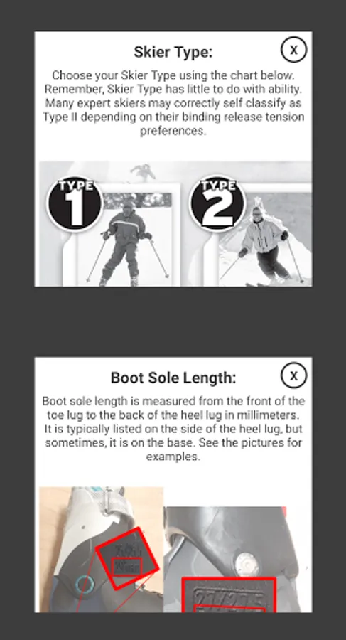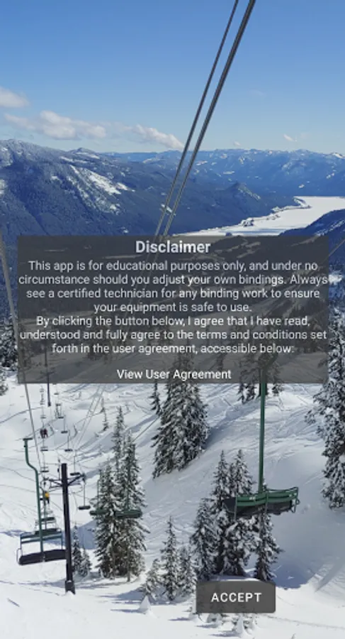 This app is intended for educational purposes only, and under no circumstance should you adjust your bindings using the information provided. Always see a certified technician for any binding work to ensure your equipment is safe to use.