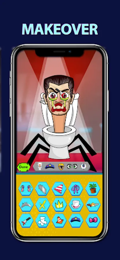 Are you creative enough to create your own toilet mix monster hero in this mix monster craft makeover toilet ASMR world? It’s a perfect time to explore the toilet monster playtime makeover in the era of Monsters' battle games. You can combine different parts of the monster body to create a messy monster collection. Let’s show your talent and make a unique skibydi toilet monster from head to toe. In this skibidi toilet spider game, you can enjoy the monster voices which will give you extra pleasure and stress release. Once you are done creating your skibydi monster makeover you can make it dance and show off your monster's dance moves to your friends.