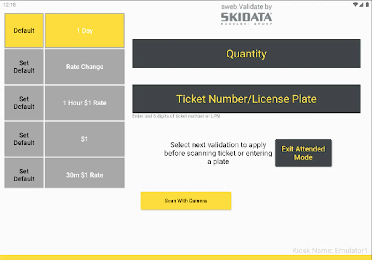 Note: This app is intended to turn an Android tablet into a validation kiosk. If you are looking to grant phone users the ability to validate parking tickets with their phones, instead use the app “sweb Validate PRO”.
