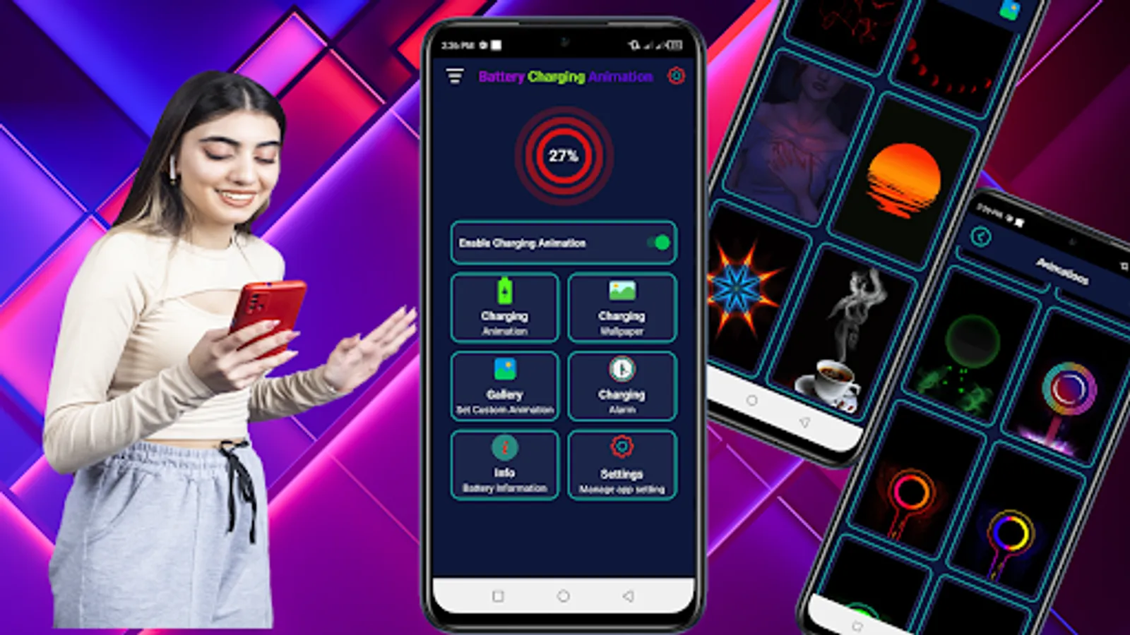 The best feature of customize charging animation is that you do not need to check your battery status again and again it will notify you on the battery full and will play alarm loudly.