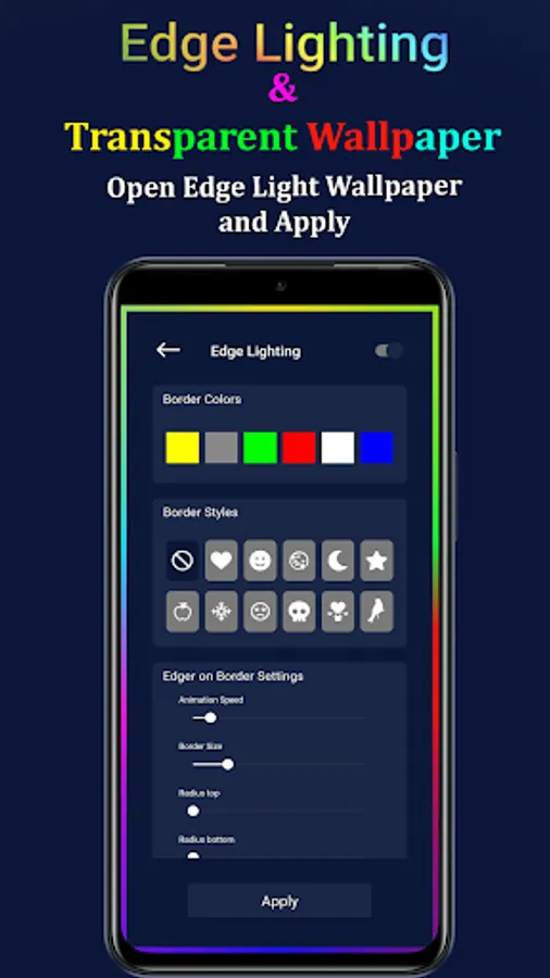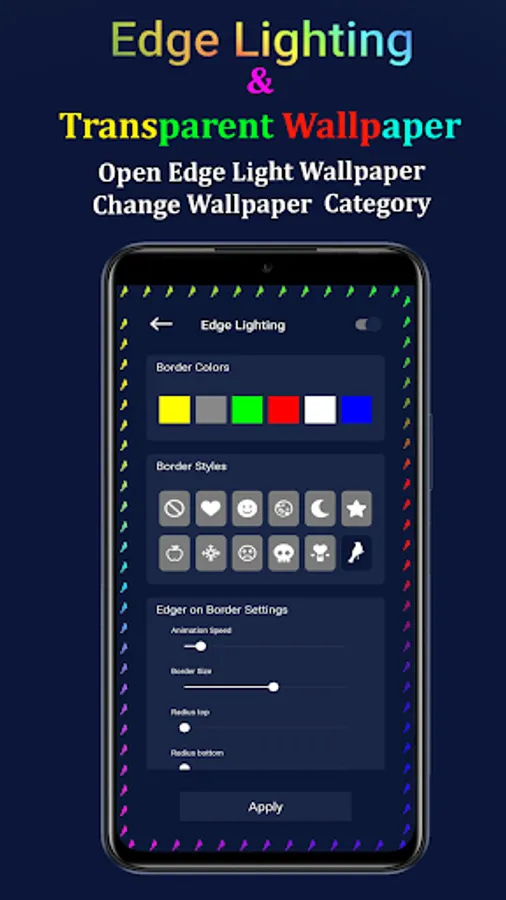 Edge Lighting wallpaper that shows moving lights of different shapes around the border of the mobile. Lighting wallpaper is lite weight wallpaper that does not consume your battery and works as a battery saver while border light is applied on your device. Border Light wallpaper light-up the mobile borders with beautiful border light animation. Edge Lighting border light wallpaper is a live wallpaper and can easily apply to the full-screen display of your mobile phone. Edge lighting colors wallpaper is totally free and you can use it to light your mobile border with screen light wallpaper. Edge Lighting colors do not consume your battery when you apply super edge light wallpaper on it.