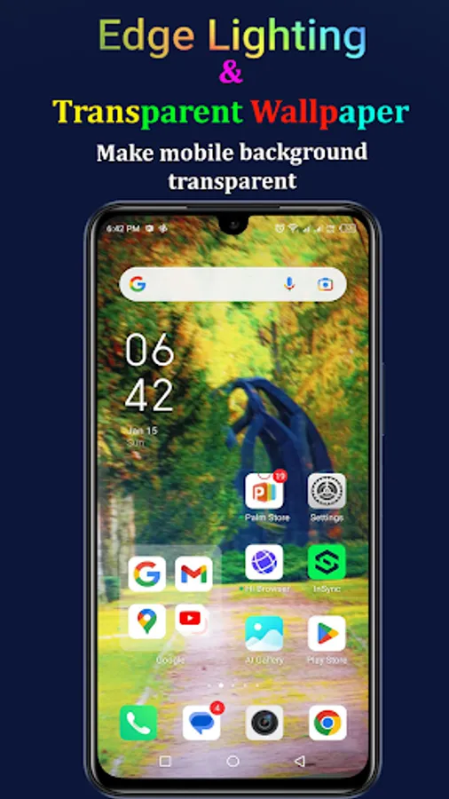 transparent background wallpaper and mirror wallpaper will help you to change your screen wallpaper and can notice what goes on the back of your mobile. You can set up mirror wallpaper as well to use your mobile and can see your face in the mirror to notify your face.