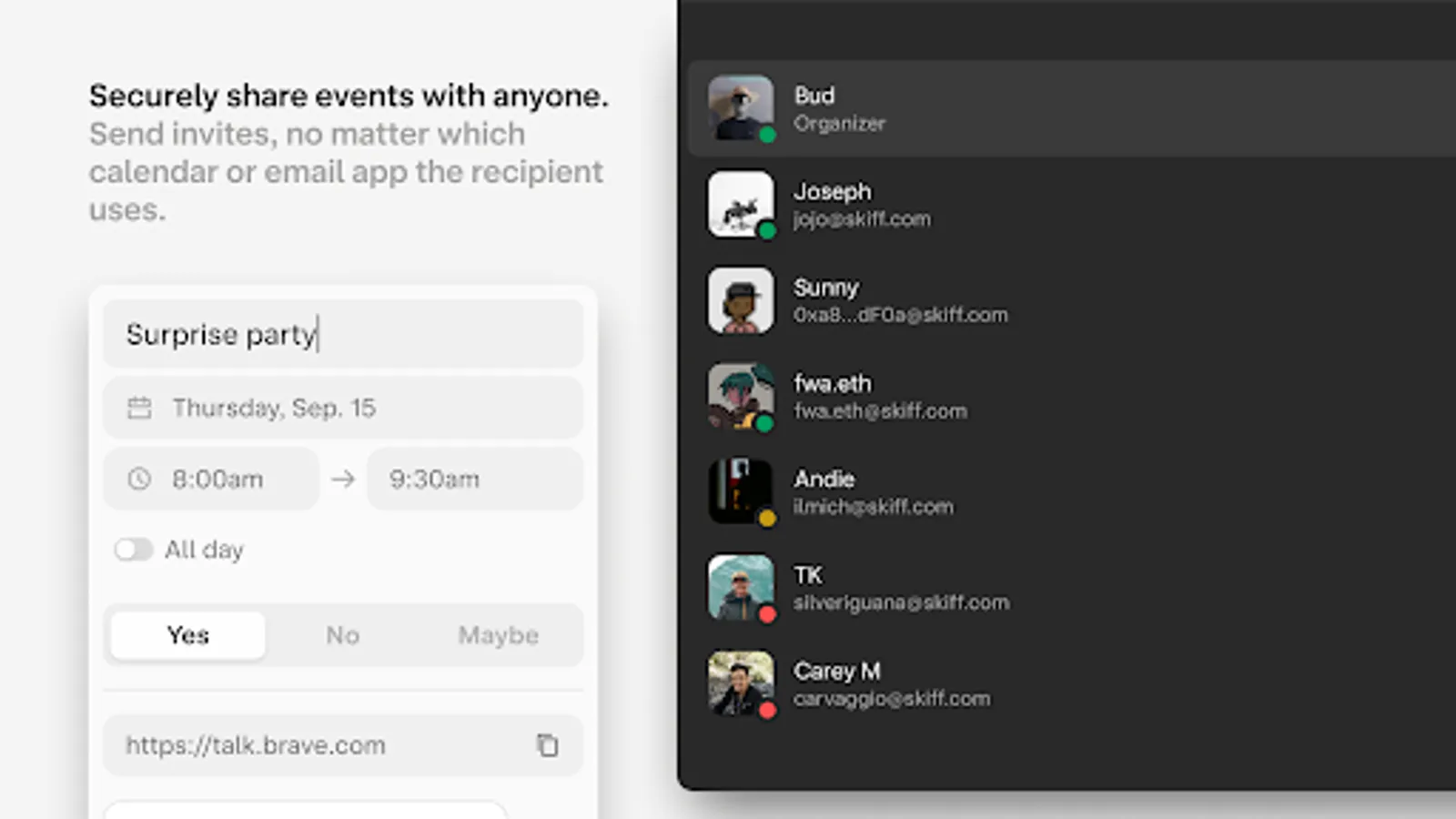 - Skiff Calendar works seamlessly with every other digital calendar, including invites, updates, and RSVPs.