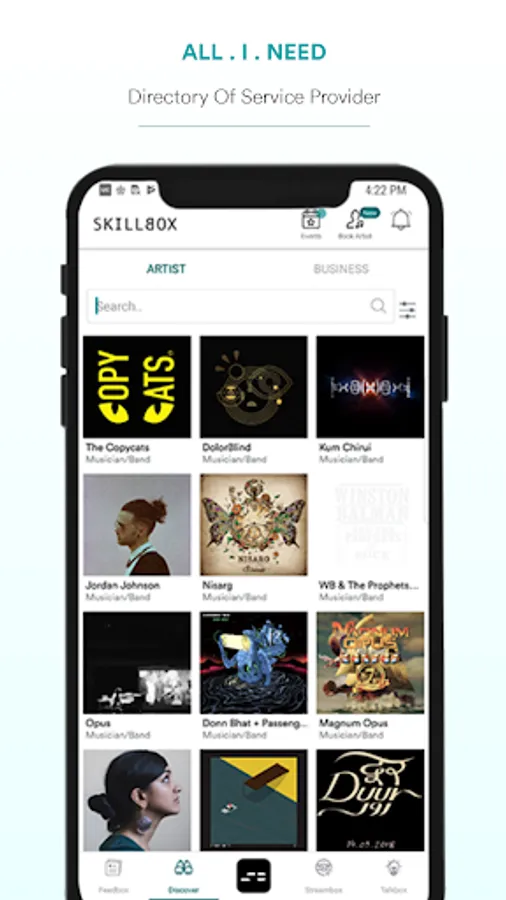 SkillBox, an open platform for artists, can help you book artists and with all your artists-related needs. SkillBox provides a systematic platform to discover new artists, find the right artist for your festival or gig and book them on fair and mutually beneficial terms. We work with thousands of verified, extremely talented artists and build the right synergy with your establishment on the basis of your aspirations, clientele, and ambiance. You can book musicians so easily and conveniently within the app!