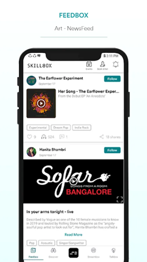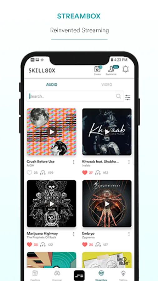 Disrupting the entertainment industry, SkillBox is an art community platform & music social network for musicians and artists, music and art enthusiasts, professionals and technicians from the music and arts ecosystem.