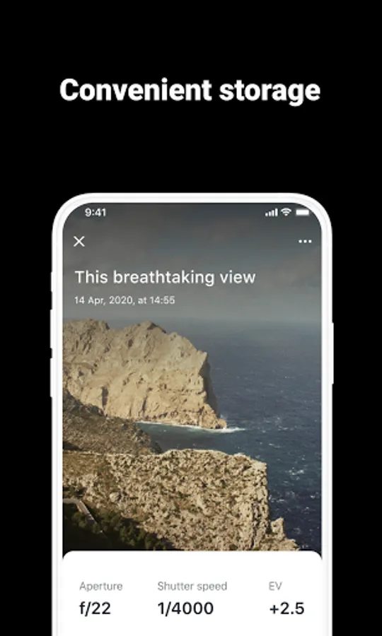 Afilm is a quick way to save all settings like shutter speed, aperture, number of shot, exposure value, timestamp and even preview of the photo!