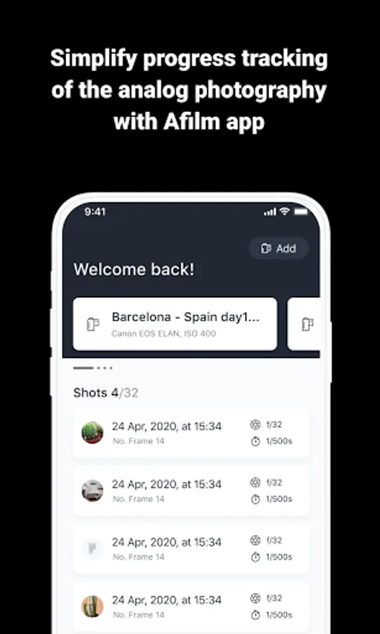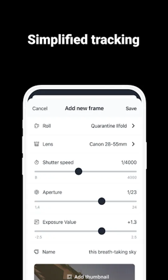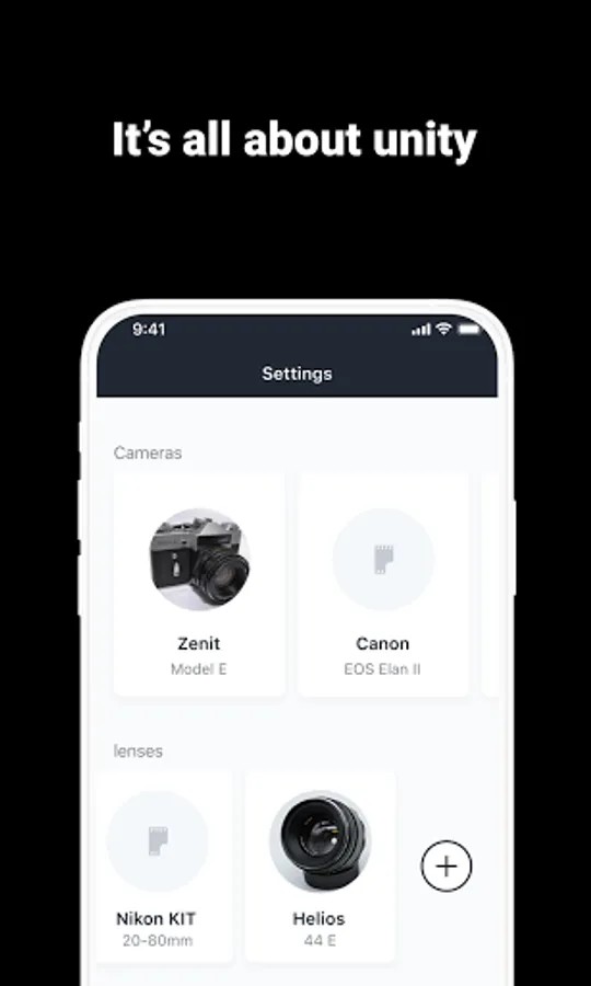 It also allows to store all your lenses and camera settings! Predefined values from camera and lenses will be reflected when you will add a new film roll.