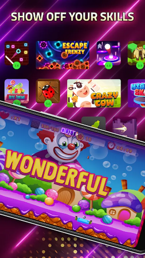 - Challenge others in fun arcade games to see who’s the ultimate skill game master.