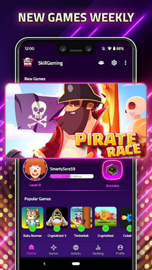 Casual games are just a tap away with Skillgaming. Level up and aim for a new high score when you play mobile arcade games that challenge you at every step of the way. Interesting games are added every week for unlimited play and new ways to test your gaming skills. Challenge yourself as soon as new minigames are released and compete for the high score.
