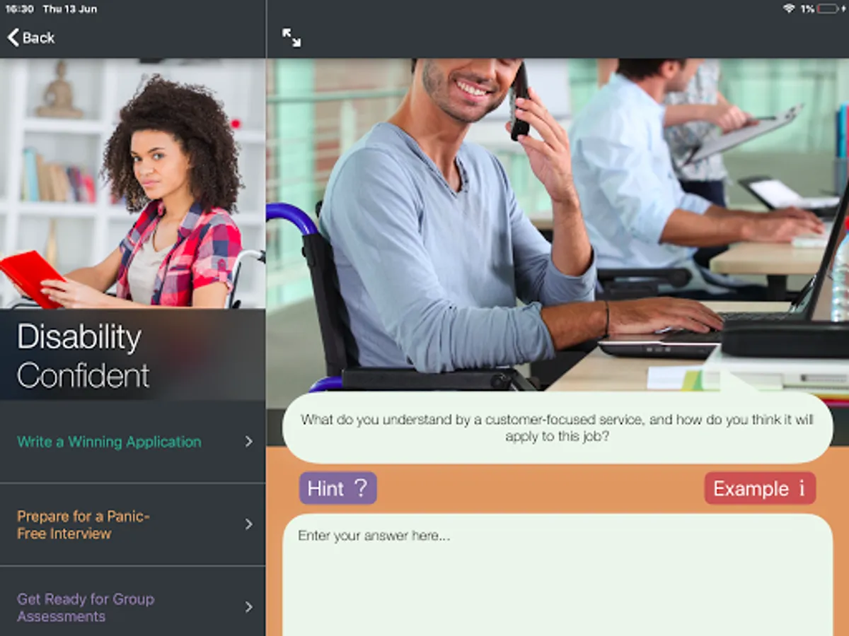 This is an inclusive app. The Disability Confident section will help users with learning or physical disabilities. Users with high support requirements will still need carer/parental/mentor/employability support to get the most out of the app.