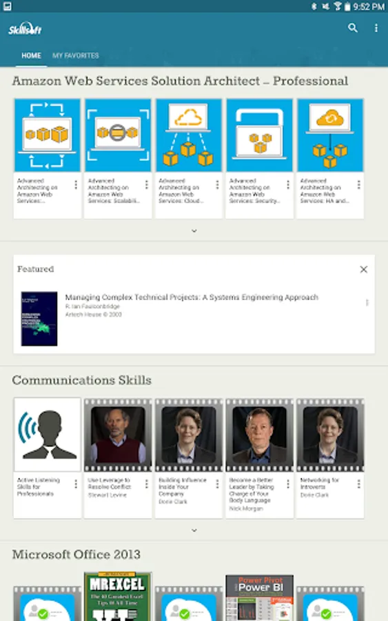 Improve yourself in minutes a day, anytime, anywhere. Access content across a variety of topics including business, personal development, desktop software and IT. Stay current with courses, videos, books, and audio books from world-class experts. Keep yourself on the leading edge to improve your performance on the job and throughout your career.