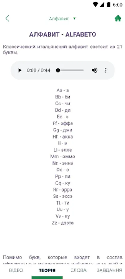 An Italian language course based on Anna Buinovska's author's method with the perception and memorization of new words at the subconscious level, bringing conversational skills to automaticity, and all this without memorizing.
