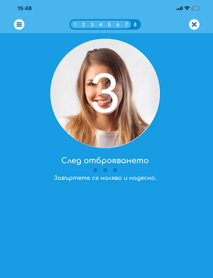 2. Take a self-portrait (selfie) of the user and take a video according to the instructions displayed on the screen of the mobile device during authentication. The captured photos and videos are automatically compared to the passport photo. In case of discrepancy / discrepancy of the compared data, the authentication process cannot be continued.