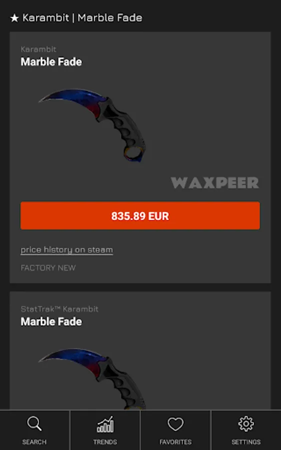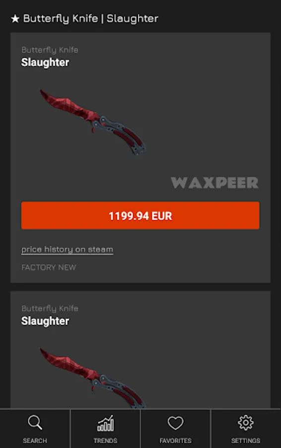 Find cheap CS:GO skins and compare all skins between all providers. We compare all the prices in real time. We support the providers Skinport, Skinbaron, CS.Money, DMarket, Bitskins, Waxpeer, CSGO.com.