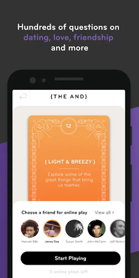 - In Person Play - Play a friend face-to-face with {THE AND} questions presented in front of you on the App