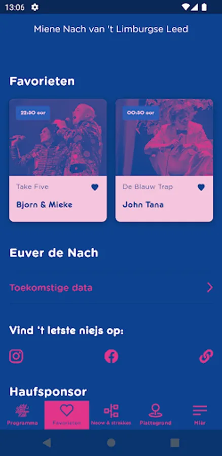The Nach 't Limburg Suffering is a Limburg dialect festival. The festival is held in order to match them with the regional music and the Limburg dialect. The public in an accessible way in contact All night long a center of Venlo on its head and bring Limburg artists pubs and cafés their songs to sing.