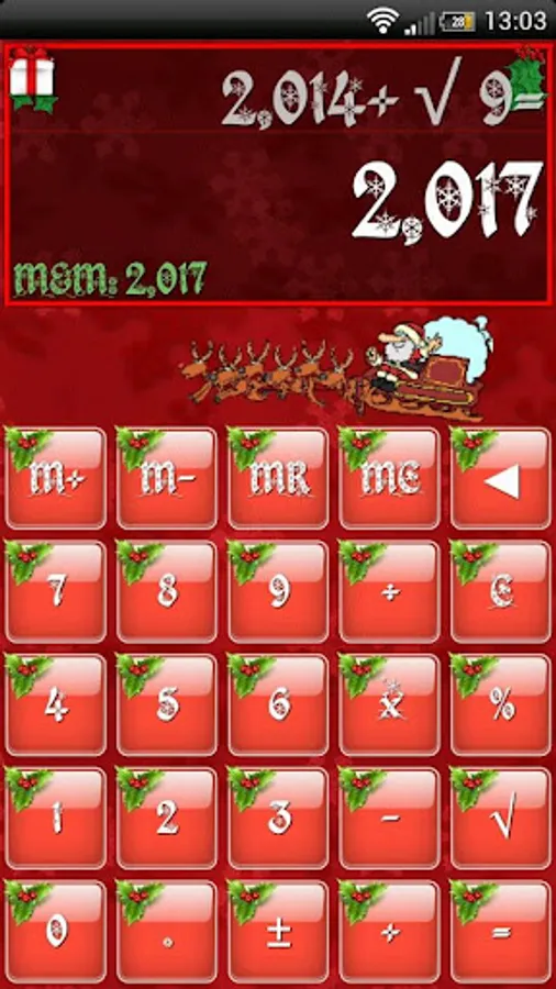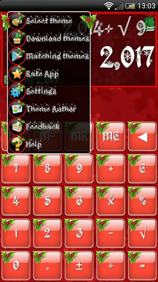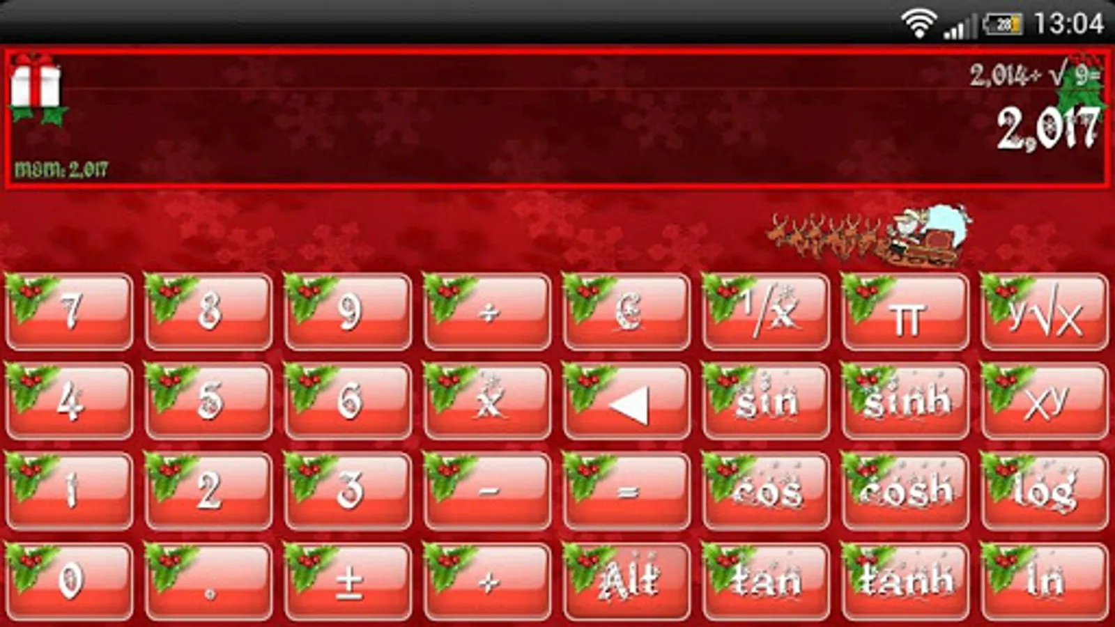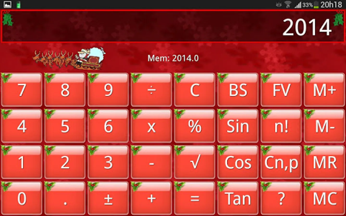 Christmas animated Themefor Skinnable Calculator, change skin, wallpaper and font. Themes for the Skinnable Calculator can be downloaded from the Play Store.