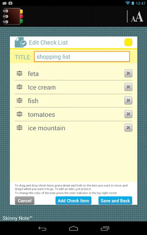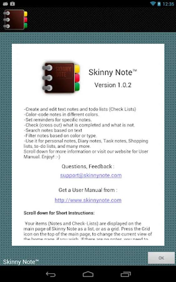 This lite version is ads supported and has some limitations). If don't want ads, if you like to add more notes, protect them with a password, and need more features, please get the full version of SkinnyNote.