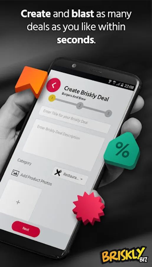 • Create and blast out private deals to nearby customers within seconds. You control the quantity, the discount, and the duration.