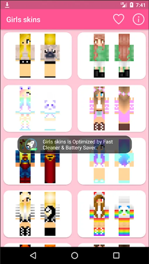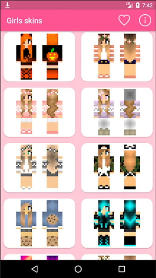 Skins for girls is a huge set of add-ons for the game Minecraft. Each girl can decorate the familiar world with bright colours and have fun. The application will give you the opportunity to see your favourite characters in a new guise. To expand the basic set of game elements will help the best collection of add-ons created specifically for girls. Become a beautiful princess, play the role of real beauty, radically change the appearance of game characters.
