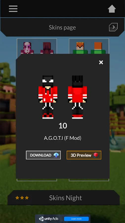In this app, you can Zoom in & out and rotate your skin model on 3d preview to see how it will look on your game, so just chose your character and have fun.
