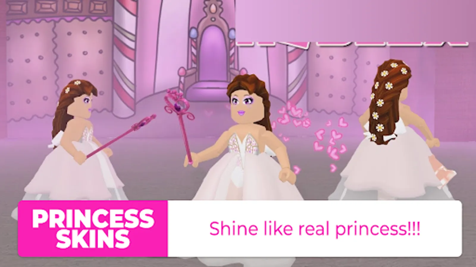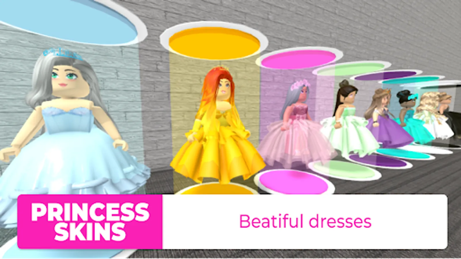 Roblox skins for girls are available for free in our app and every girl can become a princess! Skins for girls are very beautiful and diverse, if you wear a dress, it will develop in the wind. Stylish skins for girls will surprise absolutely everyone and you will find a skin to your liking. By the way, Princess Skins, in addition to a beautiful and magnificent dress, have crowns so that all players immediately understand who the queen is. Skins for Roblox are an indispensable thing, because you will stand out from the crowd, so you will be noticed! There are a lot of skins for girls, I can tell you about some of them: