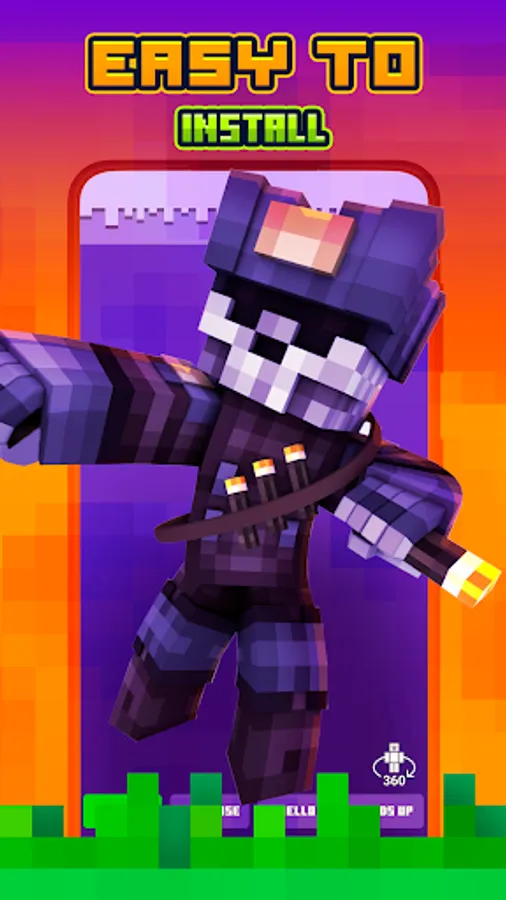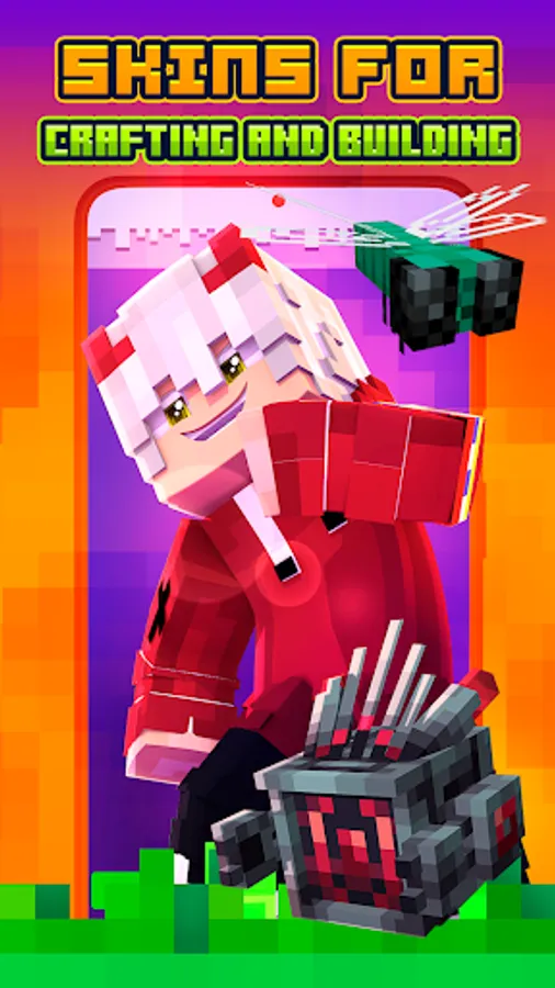 The catalog is constantly updated by different categories of popular skins like anime skins, mob skins, skins sonic, baby, wing skins, cute girl, nova skin, animal, enderman, pet skins, kawaii and other popular Skins for Minecraft 2. You can view all kinds of skins for Crafting and Building in high quality 3D Preview in our app before installation.